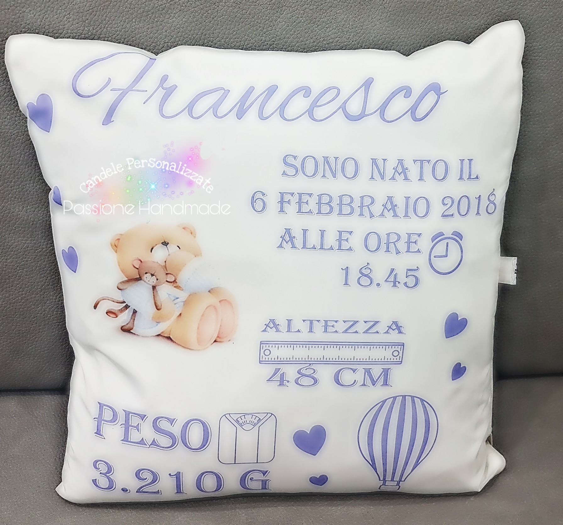 CUSCINO NASCITA PERSONALIZZATO