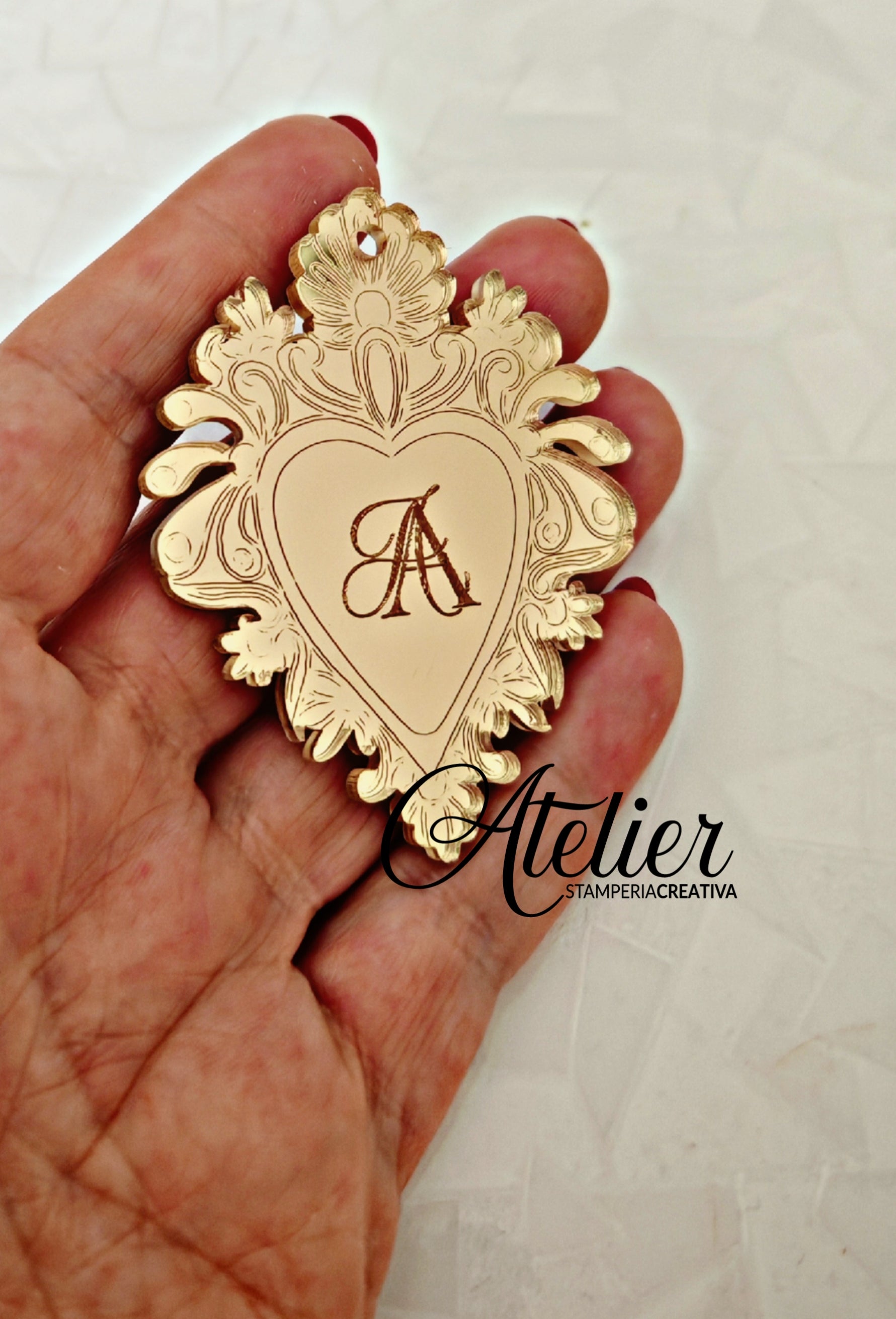 "Rendi il tuo matrimonio ancora più speciale con i nostri segnaposto "Cuore Sacro". Realizzati in plexiglass e disponibili con foro o senza, sono anche personalizzabili con le iniziali degli sposi o il nome degli ospiti. Aggiungi un tocco personale alle tue tavole e lascia un ricordo duraturo ai tuoi invitati."